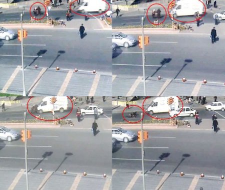 Kayseri Cumhuriyet Meydanı’nda meydana gelen iki ayrı trafik kazasında, araçlar karşıdan karşıya geçen yayalara çarptı. Meydandaki ilk kaza görüntüsünde, kırmızı ışıkta duran araç aniden hareketlendi. Karşıdan karşıya geçen erkek bir şahsa çarptı. Çarpmanın etkisiyle yere fırlayan şahıs yaralandı. Meydandaki ikinci kazada, karşıdan karşıya geçen iki bayan, hızlı gelen minibüsün çarpmasıyla fırladılar. Yayaların, üzerlerine gelen minibüsü elleriyle karşılaması ise dikkat çekti. Yere fırlayan iki yaya hastaneye kaldırıldı.