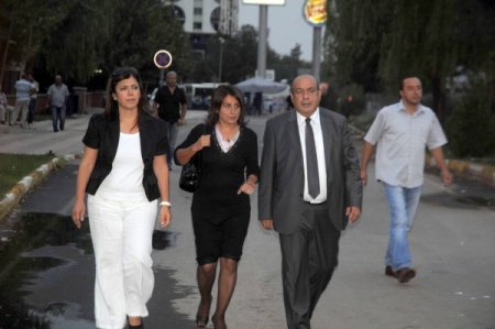 Diyarbakır Adliyesi 6. Ağır Ceza Mahkemesi'ne KCK operasyonu kapsamında Şırnak’tan Diyarbakır’a sevk edilen Şırnak Belediye Başkanı Ramazan Uysal, Silopi Belediye Başkanı Emin Toğurlu ve İdil Belediye Başkanı Resul Sadak’ında aralarında bulunduğu KCK sanıklarını durumunu öğrenmek için adliyeye DTK Eş Başkanı Aysel Tuğluk, BDP Şırnak Milletvekili Hasip Kaplan ve Avukat Meral Danış Beştaş adliye önünde açıklamalarda bulundu.