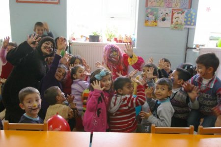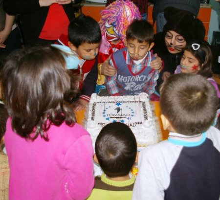 Yaş pasta kesip, hediyelerini alan ana sınıfı çocukları, palyaçonun oynattığı oyunlarla gönüllerince eğlendi.