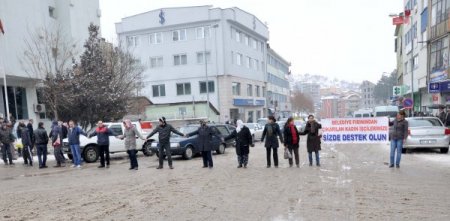 Trafiğin en işlek olduğu Cumhuriyet Caddesi üzerinde aileleriyle bir araya gelen ve ele ele tutuşan kadınlar, yarım saat süresince yolu trafiğe kapatarak, araçların geçişine izin vermedi.