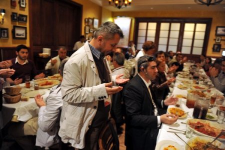 Aralarında belediye başkanları, bürokratlar, belediye meclis üyeleri, halk oyunları dans grubu ve gazetecilerin bulunduğu heyet, geldikleri Washington D.C’de ilk gün temaslarını ziyaretlere ayırdı. Öğle yemeği için başkentin ünlü İtalyan restoranlarından Carmine’ye giden Türk heyet, İtalya’nın ünlü yemeği makarnayı tercih etti. Yaklaşık 50 kişinin bulunduğu heyet, yemeği yapılan dua ile bitirdi. Yemek duasını ise Ankara İl Genel Meclisi’nin üyelerinden Selim Cerrah yaptı. Herkesin ‘amin’ dediği yemek duasına, heyetin ulaştırma görevini yapan Kamboçya, Liberya ve ABD’li şoförler de ellerini kaldırarak eşlik etti. Renkli görüntülerin oluştuğu yemek duasında, birlik ve beraberlik mesajları da verildi.