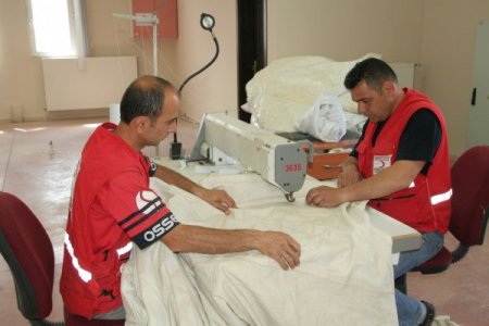 Geçtiğimiz yıl Erzincan’da hizmete açılan ve Türk Kızılay’ın çadır stokuna cevap veren Kızılay Erzincan Çadır Üretim Atölyesi bu aralar yoğun çalışma yapılıyor. Van’da meydana gelen deprem felaketini ardından çadır deposundan bulunan yüzlerce çadır deprem bölgesi Van’a sevk edilmişti. Çadırda yaşayan vatandaşların konteynerlere taşınması ile birlikte boşa çıkan ve hasar gören çadırlar TIR’larla Erzincan’a getiriliyor. Atölye'ye getirilen çadırlar, görevli personel tarafından onarılıyor. İş yoğunluğunun onarım çalışmalarına verildiğini açıklayan Türk Kızılayı Erzincan Şube Başkanı Yrd. Doç. Dr. Ferit Bayata, "750 metrekare çelik prefabrik binada yapılmış çadır üretim atölyesi, Doğu Anadolu’da tek üretim tesisi. Kurulduğu günden bu güne 2 bin çadır bu tesiste tamir edildi ya da yeniden üretildi. Van’dan haftada yaklaşık iki tır çadır, tesise gelerek tamiratları yapılıyor. Erzincan’ın batısında Adana Şanlıurfa ve Gaziantep illerindeki depolara ya da Suriye’den gelen göçmenlerin kaldıkları geçici konaklama tesislerine gönderiliyor. Tesisin kapasitesini arttırması planlıyoruz. Çadır üretim alanımıza aldığımız 7 personelimiz yetişti. Daha da ileriki günlerde bunların kapasitesini arttırarak, usta, ustabaşı gibi kadrolar vereceğiz. Erzincan’ımıza güzel bir tesisin kazandırılması açısından huzur içerisindeyiz. Kapasitemizi daha da arttırarak ilimize ve bölgemize en iyi hizmeti vereceğiz." dedi.
