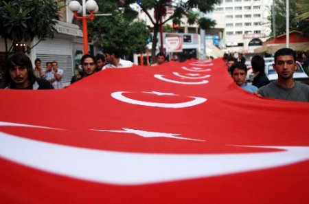Ulu Cami önünde toplanan grup, kardeşliğe vurgu yapan sloganlar eşliğinde açılan 30 metrelik Türk Bayrağı ile yürüyüşe geçti. Grup, Mersin Büyükşehir Belediyesi önüne geldi. Alperen Ocakları Mersin Şube Başkanı Mustafa Yavuz, burada yaptığı basın açıklamasında, son günlerde yaşanan olaylardan duydukları üzüntüyü dile getirdi.