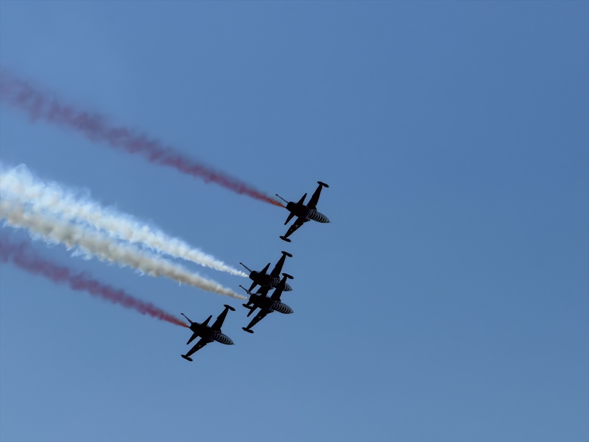 Uçakların duman atarak tırmanış, dönüş ve alçalma hareketlerini yapması, izleyenleri hayran bıraktı.