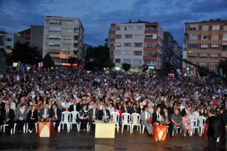 Vilayet meydanındaki programa yaklaşık 10 bin civarında insan katıldı. Akşam saatlerinde başlayan yoğun yağmur program saatine yakın ara verdi.