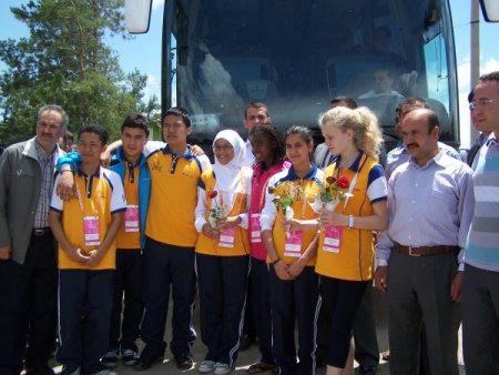 9. düzenlenen Uluslararası Türkçe Olimpiyatları için Sivas’a gelen öğrenciler Şarkışla’dan geçtiği esnada durdurularak sevgi gösterisinde bulunuldu.