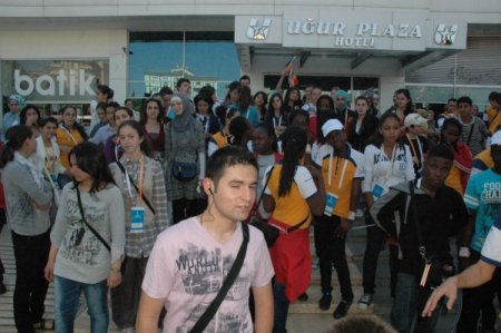 9. Uluslararası Türkçe Olimpiyatları’na katılan, adeta gönülleri fetheden yabancı öğrencilerin Anadolu turnesi sürüyor. Bu kapsamda, 16 ülkeden yaklaşık 128 öğrenci Gaziantep’e geldi. Sabah saatlerinde havaalanında coşkulu bir şekilde karşılanan Türkçenin çocukları, daha sonra Uğur Plaza Otel’e geçti. Buradan da Sanko Park’a giden öğrenciler, vatandaşlar tarafından da büyük ilgi gördü. Günlerdir televizyondan takip ettikleri organizasyona katılan öğrencileri yakından gören ve fotoğraf çektirmek isteyen vatandaşlar, Türkçenin çocuklarının Gaziantep’te bulunmasından dolayı büyük mutluluk duydu.