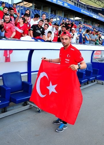 Mücadelede skor 3 - 3 gelince Türk seyircilerin bulunduğu tribünden Futbol Federasyonu Başkanı Yıldırım Demirören'e tepki tezahüratları yapıldı. Taraftarlar, 'Yeter, Yıldırım Demirören Yeter' tezahüratı yaptılar.