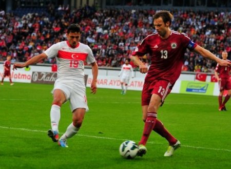 Duisburg'daki Schauinsland-Reisen-Arena'da oynanan karşılaşmada A Milli Takım'ın gollerini 8. dakikada Olcay Şahan, 23. dakikada penaltıdan Selçuk İnan ve 59. dakikada Veysel Sarı attı. Letonya'nın gollerini ise 53. dakikada Edgars Gauracs, 68 ve 83. dakikalarda da ikinci yarıda oyuna giren Valerijs Sabala attı.