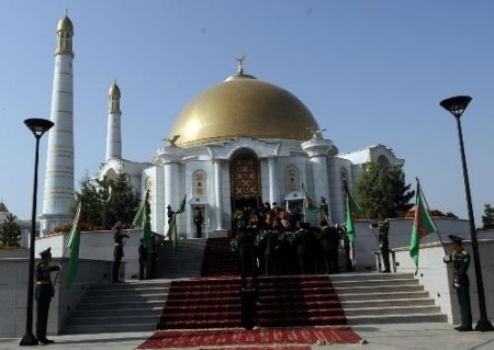 Berdimuhamedov, Kıpçak köyündeki Orta Asya'nın en büyük camisi olan Ruhi Mescit'deki merhum Saparmurat Türkmenbaşı'nın aile mezarlığına çiçek koydu. Berdimuhamedov'un ardından törene katılan devler erkanı, bakanlar, yabancı misyon şefleri de anıta çiçek bıraktı.