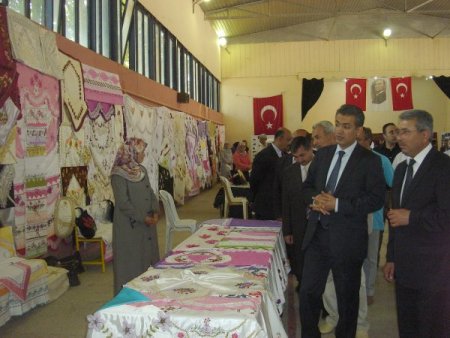 Kahramanmaraş'ın Türkoğlu ilçesinde Halk Eğitim Merkezi (HEM) bünyesindeki mesleki kursların yıl sonu sergisi açıldı.