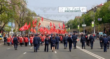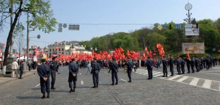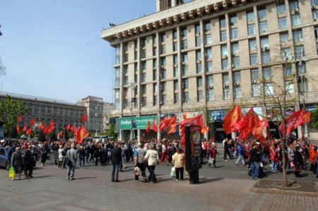 Kiev’in ünlü Hreşçatik Caddesinde ellerindeki parti bayraklarıyla polis kordonunda geçen UKP’liler “turuncu devrimin” yapıldığı Bağımsızlık Meydanı’nda platform kurulduğu için Avrupa Meydanı’nda mitinglerine devam etti. Sabahın erken saatlerinde itibaren burada toplanan 1 Mayıs işçi bayramı geçişi yapan binlerce partili daha sonra çeşitli gösteriler düzenledi.