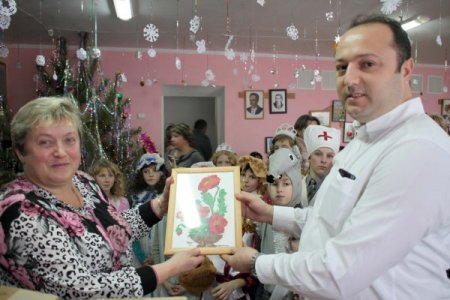 Hediyelerin dağıtılmasının ardından konuşma yapan Okul Müdürü Tatyana İvanovna yardımda bulunan tüm TUİD üyelerine teşekkür ederek, derneği temsil eden Okan Tanrıkulu'na yurtta eğitim gören çocukların yaptığı elişi hediyeyi takdim etti.
