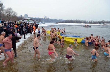 Ukraynalı Ortodokslar, Hz. İsa'nın vaftiz edildiğine inanılan 19 Ocak gününde başkent Kiev'in ortasından geçen Dinyeper Nehri’nde suya girerek vaftiz oldu.