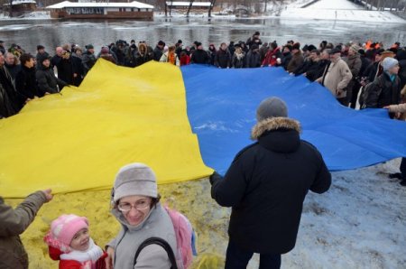 Bir gurup vatandaş ise nehre beraberinde getirdikleri, büyük bir Ukrayna bayrağını açarak girmesi renkli görüntüler oluşturdu.