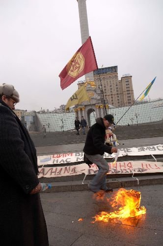 Meydanda küçük bir gurup toplumda panik oluşturmayın diye maske yakarken diğer bir gurubun ise metrodan çıkanlara tedbir alın diye maske dağıttığı görüldü. Bu iki gurubun arasında ise bir Dinamo Kiev taraftarının futbol top ile gösteri yapması dikkat çekti.