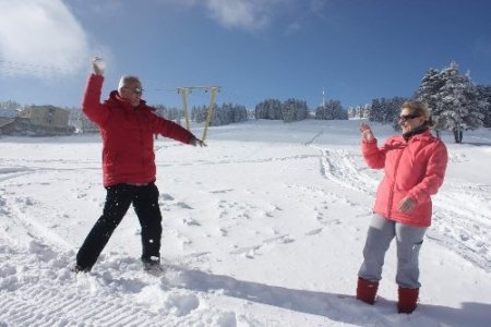 Güneşli havada Uludağ’ı gezerek muhteşem manzaranın tadını çıkaran tatilciler arasında yaşlı bir çift de vardı. Evliliklerinin 38. yıldönümünde iki günlüğüne İstanbul’un stresinden kaçtıklarını söyleyen Hanifi ve Bahar Tangülü çifti, kar üzerinde vakit geçirdiklerini kaydetti. Kar üzerinde kaymanın farklı bir heyecan olduğunu kaydeden çift, “Bu sene evliliğimizin 38. yıldönümünü kutlayacağız. Onun için İstanbul’dan gelerek Uludağ kaçamağı yaptık. Uludağ gerçekten çok güzel. Buraya mümkün olduğunca her kış gelmeye çalışırım.” diye konuştu.