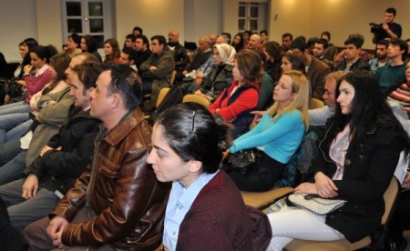 Usta oyuncu Ulvi Alacakaptan, Karagöz Sinema Atölyesi’ne konuk oldu. Önce Çocuk Sanat Evi’nde derse giren oyuncu, daha sonra da Tayyare Kültür Merkezi’ndeki seminerde kursiyerlerle bir araya geldi. Kendisiyle ilgili merak edilenlere cevaplar veren Alacakaptan, oyunculuk atölyesinin, bilinçli ve yaşamının farkında olan oyuncular yetiştirmesi bakımından önemli olduğunu söyledi. İyi bir oyuncunun geniş bir genel kültüre sahip olması gerektiğini vurgulayan Alacakaptan, kursiyerlere 43 yıllık mesleki deneyimlerini aktardı. Dizi ve televizyon dünyasıyla ilgili görüşlerini dile getiren ünlü oyuncu, ‘başarı’ kavramının popülerlikle aynı olmadığını ifade ederek, “Çok izlenen herşey başarılı demek değildir. Bu nedenle çok izlenen her yapımın başarıyla endeksli olduğunu düşünmeyin. Popüler, halkın tuttuğu demektir. Dünyada halkın tuttuğu şeyler, popülerdir ama kolay tüketilebilir.” diye konuştu.