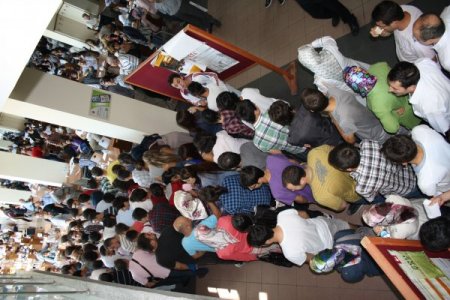 Üniversite kayıtlarının başlamasıyla birlikte öğrenci ve veliler, sıcağın altında kuyruk çilesi yaşadı.