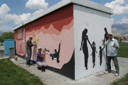 Topluma Hizmet Uygulamaları dersi kapsamında Erzincan Üniversitesi Matematik Öğretmenliği Bölümü öğrencileri ‘Erzincan'landıralım’ projesi ile TEDAŞ’a ait elektrik trafosunu boyuyor. Topluma mesaj vermek için ilginç figürler ve mesaj içerikli sloganlar yazan öğrenciler, trafoları rengarenk bir görünüme kavuşturuyor.