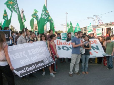 Genç-Sen üyesi yaklaşık 100 öğrenci, üniversite harçlarına yapıldığını iddia ettikleri zamları protesto etmek için Tünel Meydanı’nda toplandı. ‘Üniversitede soygun var’ , ‘Söz değil icraat istiyoruz. Harç zamları geri çekilsin’ yazılı pankart açan grup ‘Torba yasa kaldırılsın’ , ‘Parasız eğitim haktır’ , ‘Harç zamları geri çekilsin’ yazılı dövizler açtı. İstiklal Caddesi üzerinden Taksim’e doğru yürüyüşe geçen öğrenciler ‘Harç zamları geri çekilsin’ , ‘Harçlara zam yaptırmayacağız’ , ‘Eşit parasız bilimsel anadilde eğitim’ , ‘Eğitim hakkı engellenemez’ , ‘Savaşa değil eğitime bütçe’ , ‘Üniversiteler bizimdir bizimle özgürleşecek’ şeklinde sloganlar attı.