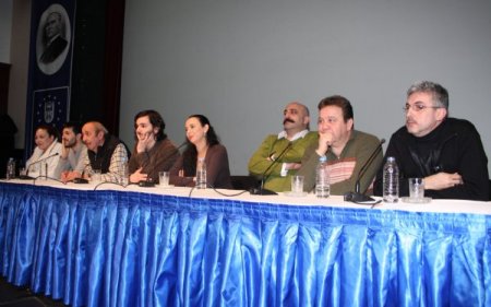 Tayyare Kültür Merkezi’nde gerçekleştirilen seminere katılan kursiyerler, Merinos AKKM’de sahnelenen ‘Yazıldıysa Bozulmaz’ adlı oyunun oyuncuları Serhat Özcan, Pelinsu Pir, Celal Tak, Can Kahraman, Ayberk Atilla, Oya Semerci, Zeynep Coşkun, Okan Yahşi ve Osman Karagöz ile oyun öncesinde bir araya geldi. Sanatçılara, merak ettikleri soruları soran kursiyerler, sanatçıların oyunculukla ilgili samimi açıklamalarını da ilgiyle dinledi. Kursiyerler, keyifli sohbetin sonunda sanatçılara alkışlarıyla teşekkür etti.