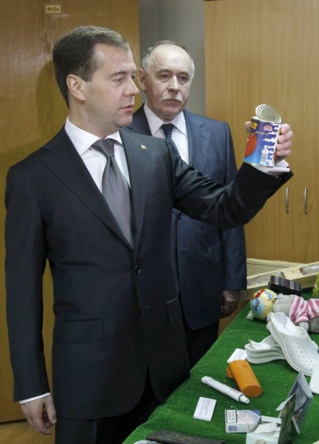 Burada Medvedev’e uluslararası uyuşturucu trafiğinde kullanılan icatlar da gösterildi. Rusya Devlet Başkanı, uyuşturucu tacirlerinin transit amaçlı kullandığı malzemeleri şaşkınlıkla izlerken, “İnsanoğlunun kötü amaçlar için kullandığı icatların sınırı yok. Ne yazık ki” dedi. Bir salça konserve kutusunda nasıl uyuşturucu taşındığına merak eden Medvedev kutuyu eline alarak, “Muazzam teknoloji. Kutuya yerleştirmek. Fabrikada yapılan şekliyle kutuya yerleştirmek” diye tekrarladı.
