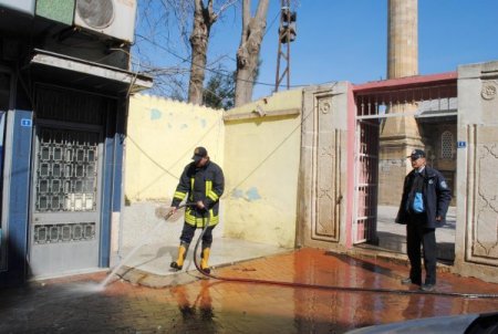 Uzunköprü Belediyesi, ilçedeki camilerin önlerini yıkayarak temizliyor.