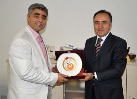 Vali Altıparmak ziyaretin anısına Cihan Bölge Yayın Temsilcisi Tuncer Çetinkaya’ya Antalya Valiliği’ni sembolize eden bir plaket takdim ederken, Çetinkaya’da Vali Altıparmak’a Antalya’nın sembolerinden Üç Kapılar ve Yivli Minare işlemeli bir kristal hediye etti.