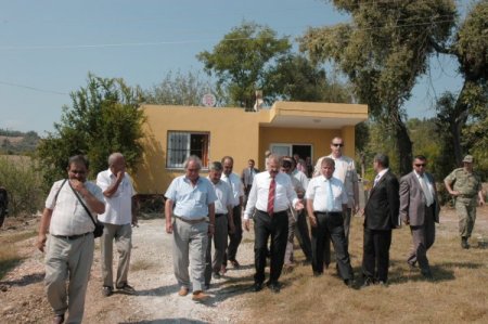 Osmaniye Valisi Celalettin Cerrah, Kadirli'de geçen yıl Durmuşsofular köyünde meydana gelen hortumda evleri yıkılan vatandaşları yeni evlerinde ziyaret etti.