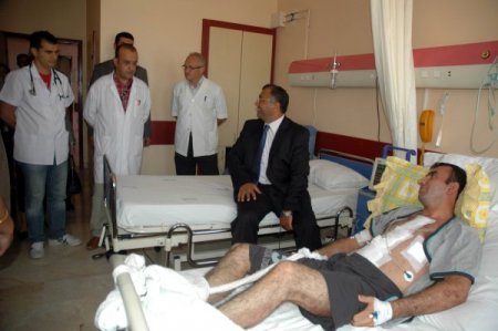 Kütahya Valisi Kenan Çiftçi, kavga eden kişileri ayırmaya çalışırken bıçakla yaralanan polis memurunu tedavi gördüğü hastanede ziyaret etti.