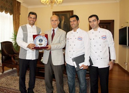 Başarılı bir rekor denemesiyle 2 bin 23 metre uzunluğunda kol böreği yaparak Guinness Rekorlar Kitabı’na girmeyi başaran İkizler Börek’in sahibi Hasan Acar, Vali Şahabettin Harput’u ziyaret etti. Guinness’e başvurduğu günden bu yana Vali Harput’tan çok destek gördüğünü belirten Acar, Harput’a Guinness anısına bir tabak hediye etti.