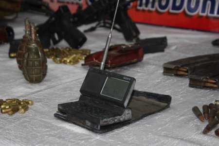 4 adet F1 savunma tipi Rusya yapımı el bombası, 2 adet kaleşnikof marka fişek yatağı dolu vaziyette uzun namlulu silah, uzun namlulu silaha ait 4 ade şarjör, uzun namlulu silah şarjörleri içerisinde 118 adet fişek, şarjörlerden ayrı yerde kaleşnikof silaha ait 62 adet fişek. Bir adet Uzi marka silah, silaha adet dolu şarjör, şarjörler içerisinde 70 adet fişek, 1 adet glock marka silah, silaha ait 3 dolu şarjör, cep telefonları, terörist grubun haberleşmede kullandıkları ve eylem talimatları aldıkları değerlendirdikleri radyo. Sony marka cep radyosu içerisinde gizlenmiş vaziyette şifrelerin bulunduğu doküman, şahısların üst aramasında örgütsel faaliyetlerde kullanılmak üzere 5 bin 755 TL ve 1.500 Avro para.