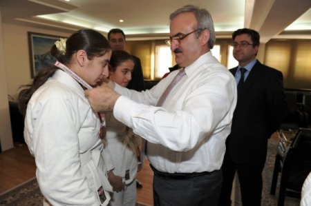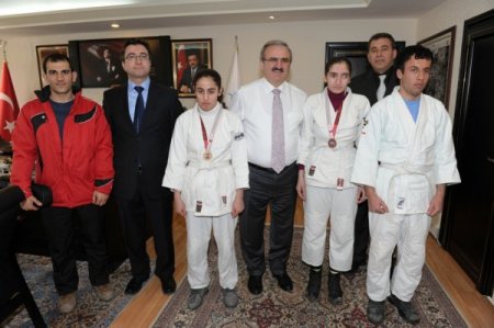 Türkiye Şampiyonası’nda dereceye giren görme engelli Judocular Vali Yardımcısı Mehmet Yüzer, İl Gençlik ve Spor Hizmetleri Şube Müdürü Yalçın Özdemir ve antrenör Rakip Aslan, Vali Münir Karaloğlu’nu makamında ziyaret etti. Sporcular kazandıkları madalyaları Vali Karaloğlu’na takdim ederken, Karaloğlu da judocuları tebrik ederek madalyaları boyunlarına taktı. Sporcularla kısa bir sohbet yapan Karaloğlu, sporculara görme engelliler için özel bir programla çalışan birer adet bilgisayar hediye edilmesi talimatını verdi. Bilgisayarlarına kavuşacak olan judocular Vali Karaloğlu’na teşekkür ederek, ziyaret anısına hatıra fotoğraf çektirdikten sonra makamdan ayrıldı.