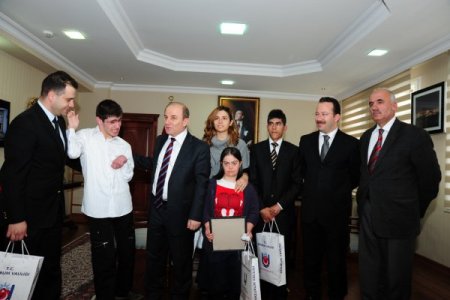 Çizmelioğlu Özel Eğitim ve Rehabilitasyon Merkezi'nden Yusuf Aslan, Ahsen Özel Eğitim ve Rehabilitasyon Merkezi'nden Melek Çeler ile Uzmanlar Özel Eğitim Okulu'ndan işitme engelli Emrah Çoban'ı başarılarından dolayı tebrik eden Vali Öztürk, en kısa zamanda kendilerini çalışma ortamlarında ziyaret etmek istediğini söyledi. Engellerine rağmen kendilerine özgü marifetleriyle çeşitli eserler ortaya koyan öğrenciler, beraberlerinde getirdikleri tabloları Vali Öztürk’e gösterdi.