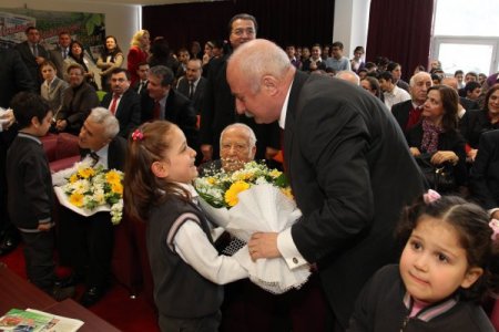 Konuşmalardan sonra Vali Yüksel Hayırsever Turhan Dökmeci ve oğlu Emre Dökmeci'ye eğitime yaptıkları katkılardan dolayı birer plaket sundu.