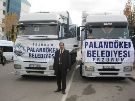 Van depremi Anadolu insanını kenetledi. Palandöken Belediyesi Van'daki depremzedelere yardım elini uzattı. Belediye tarafından 2 TIR dolusu gıda, ilaç malzemesi ile jeneratör ile 30 ton su belediye önünde düzenlenen uğurlama töreni ile Van'a gönderildi. Belediye Başkanı Orhan Bulutlar öncelikli olarak depremzedelere gıda malzemesi, içme suyu ve ilaç gönderdiklerini kaydetti. Yardımları Başkanvekili Fehmi Akçil ve Yardımcısı Zafer Bülent Engin'in yerine ulaştıracağına dikkat çeken Bulutlar, "Belediye olarak Van'daki kardeşlerimizin ihtiyaç duydukları gıda ve tıbbi malzemelerini gönderiyoruz. 20 bin ekmek, 30 ton içme suyu ile diğer yardımları götürecek olan iki arkadaşımız Van ve Erciş'te ihtiyaç tespitinde bulunacak. Tespitler doğrultusunda ihtiyaç duyulan yardım malzemelerini yine Van'daki depremzede kardeşlerimize göndereceğiz." diye konuştu.