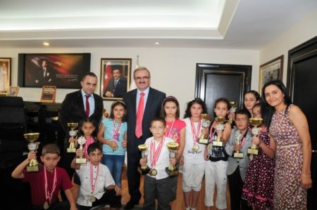 Merkezi Mersin’de bulunan ve 04-12 yaş arası çocuklara Abaküs eğitimi vererek matematiği korkulu rüya olmaktan çıkaran Menar Mental aritmetik eğitimi Van’da da veriliyor. 1 yıl önce eğitim vermeye başlayan merkezdeki öğrenciler geçtiğimiz günlerde Antalya’da düzenlenen Türkiye 2. Abaküs Mental Aritmetik Oyunları’nda kupa ve madalyaları topladı. Türkiye’deki Menar Mental Şubeleri’nden 104’ünün katıldığı ve 30 kupa ve madalyanın dağıtıldığı oyunlarda 16’snı Van Şubesi’ndeki öğrenciler kazandı. Van’ın dahi çocuklarının elde ettiği bu başarı başta aileleri olmak üzere menar yöneticilerini sevindirdi. Vali Münir Karaloğlu da Menar-Mental Aritmetik Eğitim Merkezi Van İl Temsilcisi Cesim Laçin, Eğitimci Selma Yaşar ve madalyaları toplayan öğrencileri makamında kabul etti. Yöneticileri ve öğrencileri elde ettikleri başarıdan dolayı tebrik eden Karaloğlu, 3 ay önce Menar-Mental Aritmetik Eğitim Merkezi’ne devam eden kızları Meralsu ve Elif Meva’ya da 1. kuru bitirdikleri için başarı madalyalarını taktı. Öğrencileri de çeşitli hediyelerle ödüllendiren Karaloğlu, ziyaret anısına tek tek hatıra fotoğrafı çektirdi.