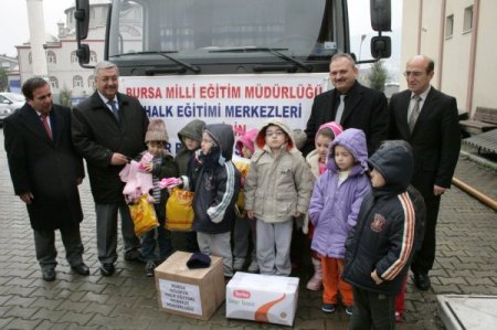 Bursa Milli Eğitim Şube Müdürü Mehmet Ekiz, Van’da meydana gelen depremden sonra toplumda yardımlaşma duygusunun ön plana çıktığını söyledi. Ekiz, "Milli Eğitim Müdürlüğüne bağlı 17 halk eğitim merkezi olarak başlattığımız ‘Bir başlıkta sen ör, başlar ve gönüler ısınsın’ projesi kapsamında toplam 170 koli başlık eldiven ve atkıyı Sürat Kargo’nun katkıları ile Van’da ki öğrencilere dağıtılmak üzere bu gün gönderiyoruz. Emeği geçenlere teşekkür ediyorum." dedi.