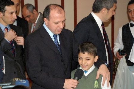 Çocuklara hediyeler veren Acar’a depremzedeler adına çiçek takdim edildi. Bir depremzede çocuk ‘Sivas’ın yollarına’ türküsünü söyledi.