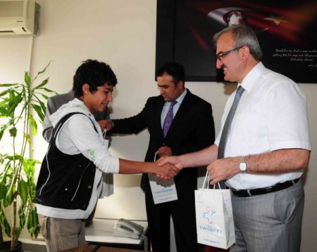 Vali Münir Karaloğlu, Van Öğretmen Derneği’nin açtığı ücretsiz SBS kurslarında, tercihli okulları kazanan 594 öğrenciden bir grubu kabul ederek ödüllendirdi. Valilik toplantı salonunda öğrencilerle bir araya gelen Karaloğlu, elde edilen başarının kendisini mutlu ettiğini belirterek, gönüllü öğretmenleri tebrik etti. Eğitimin önemli bir sorun olduğunu ifade eden Karaloğlu, “Eğitimi, sadece devlet imkânlarıyla çözme şansımız yok. Sivil toplumun mutlak surette desteğine ihtiyacımız var.” dedi.