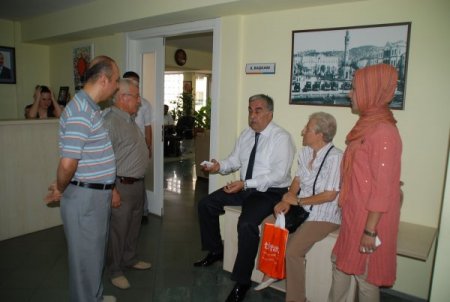 AK Parti İzmir İl Başkanı Ömer Cihat Akay, kendisini ziyaret edenleri odasının kapısında karşılayarak dertlerini dinliyor. Diğer odalardaki yardımcılarını da zaman zaman yanına davet eden Akay, problemlerin durumuna göre görevlendirme yapıyor.
