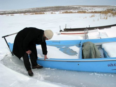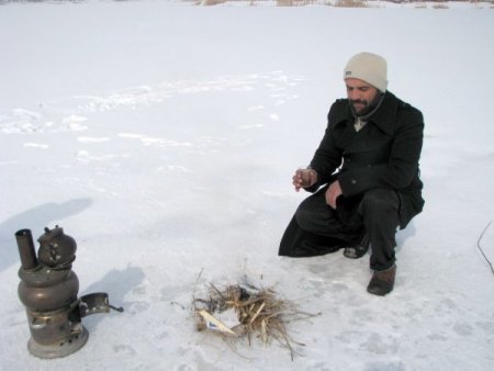 Donan gölet üzerinde çay keyfi yapmanın çok güzel bir duygu olduğunu söyleyen İlyas Yücel, "Hayatımda ilk kez buz üstünde çay ve mangal keyfi yapıyorum. Çok güzel bir duyguymuş. Göletten balık alamadığımız için biz de donan gölet üzerinde çay keyfi yamayı düşündük." diye konuştu.