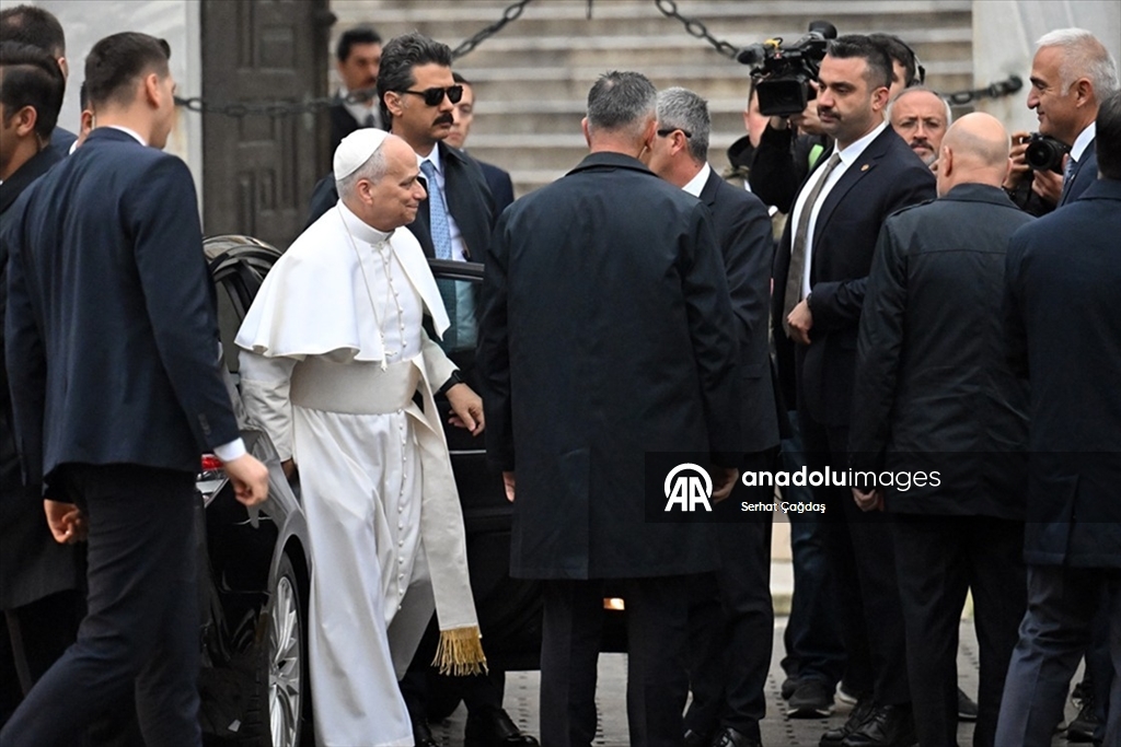 Türkiye ziyareti kapsamında İstanbul'da bulunan Papa 14. Leo ve beraberindeki heyet, Sultanahmet Camisi'ni gezdi.