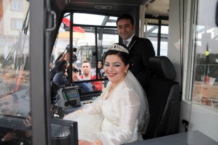 Hafif Raylı Sistem Burç Kavşağı’nda tramvay içinde gerçekleştirilen programda vatman çift ‘Gelin Tramvayı’nın koltuğuna beraber oturdu. Vatman eğitimleri sırasında tanıştıklarını, nişanladıkları günden beri evliliğe ilk adımlarını mesleklerini icra ettikleri vatman koltuğunda atmanın hayalini kurduklarını belirten çift, “Bu hayalimizi Büyükşehir Belediye Başkanımız Asım Güzelbey ile paylaştığımızda bizi onurlandırarak bu hayalimizin gerçekleşmesine izin verdiler.” dedi.
