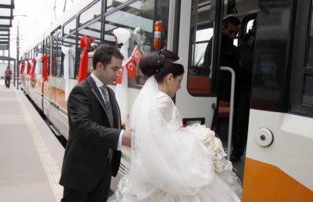 Gaziantep’te Zeynep Tülin Taşdemir (29) ve Ümit Ergören, (32) vatmanlar (tramvay sürücüsü), evliliğe ilk adımlarını tramvayda attı.