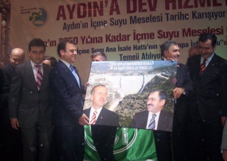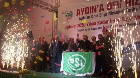 Çevre ve Orman Bakanı Veysel Eroğlu, Aydın’nında 2050 yılına kadar içme suyunu karşılaycak ishale hattının temel atma törenine katıldı. Aydın Kapalıspor salonunda yapılan törende müteahhit firmanın sahibiyle pazarlık yapan Bakan Eroğlu, 19 Ağustos 2011’de saat 12.59’da bitirme sözü aldı. CİHAN