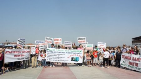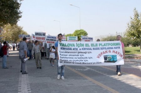 Yalova Elele Platformu öncülüğünde bir araya gelen Yalovalılar, Taşköprü mevkiinde kurulması planlanan kimyasal depolama terminalini protesto etti.