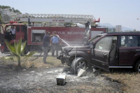 48 D 5599 plakalı otomobili ile Göcek istikametinden Fethiye’ye doğru seyreden Yunus Emre Isparta(26), Çiftlik kavşağında, Halide Yıldırım’ın(29) kullandığı 15 HD 565 otomobille çarpıştı. Çarpışma sonrasında Ispartalı’nın kullandığı otomobil orta refüje çıkarak alev aldı. Yanan araçta bulunan Yunus Emre Ispartalı güçlükle otomobilden çıkmayı başarırken, yanan otomobil itfaiye ekiplerinin müdahalesi ile söndürüldü. Yangın sırasında orta refüjdeki otlar da tutuşurken, yangının büyümesi itfaiye ekiplerinin müdahalesi ile engelli.