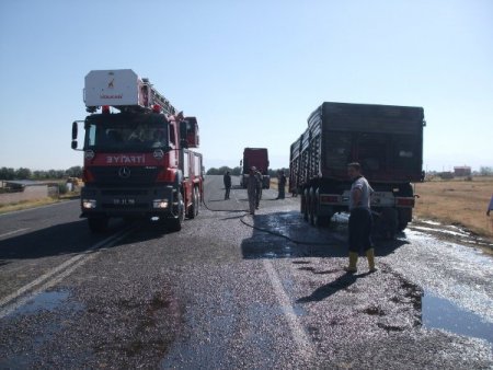 TIR'ın dorsesinde yüklü bulunan akülerin kısa devre yapması sonucu alev aldığını gören sürücü, yakınında bulunduğu petrol istasyonundan uzaklaştıktan sonra çekiciden dorseyi kurtardı. Sürücü, daha sonra itfaiye ekiplerine haber verdi.